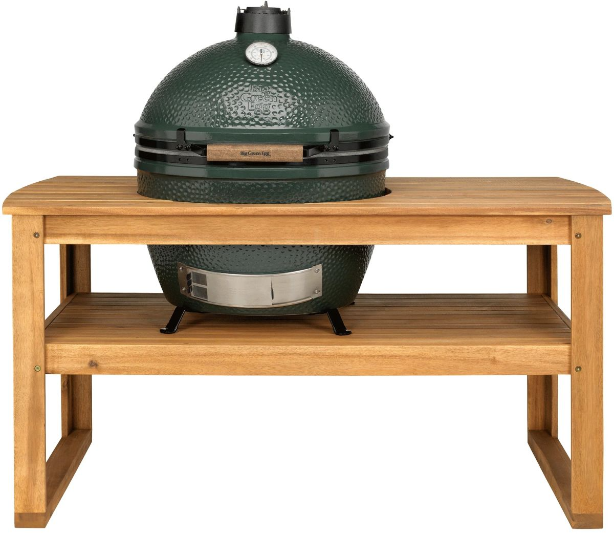 Nature takes its course. Just look at the Acacia Table. This handmade table consists of solid acacia planks and has naturally shaped grain and unique color variations. Therefore, each table is unique. The Acacia Table transforms your Big Green Egg into a complete outdoor kitchen with enough space for utensils and dishes. Place the EGG in the table on a Table Nest for necessary air circulation. Everyone enjoys gathering around the Acacia Table thanks to its warm ambiance. As the acacia tree is incomparably the most durable and hardest wood species, it is the perfect place for a Big Green Egg Large or XLarge. And do you want to move your kitchen island? Add on four sturdy wheels so you can roll your setup to the perfect spot - whether that’s in the shade or right where the action is. Casters included.Read More
